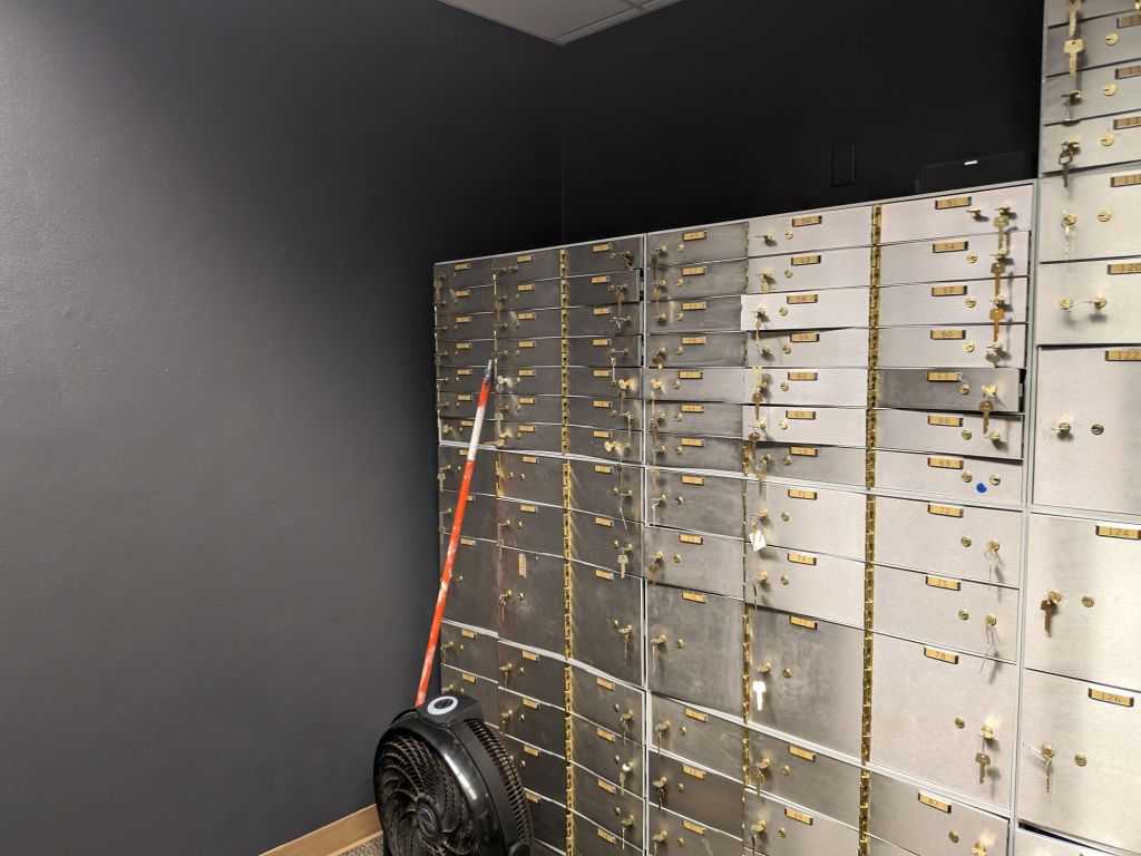 We picked a dark gray, a charcoal gray for the wall color in the new speakeasy. We hope you like it.