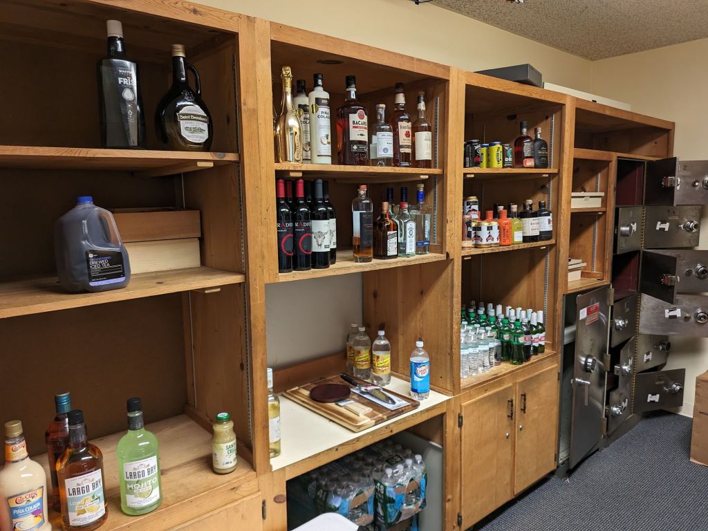Tomorrow for New Year’s we’re having a wedding at the office so I started to be a good time to load up the vault with some beverages. These beverages are sitting on the same shelves that housed all the cash for the bank.